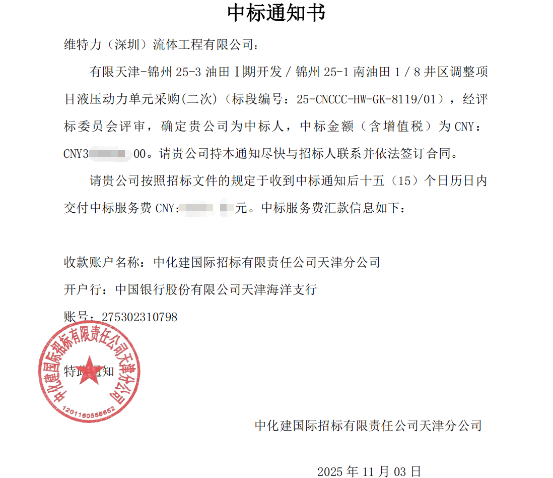 秋意渐浓,喜报频传!壹定发官网深耕实干、励精图治,成功中标有限天津两大项目——渤中 29-4 油田 29-1 区块Ⅰ期开发项目、锦州25-3油田Ⅰ期开发 / 锦州25-1南油田1/8井区调整项主张液压动力单元采购标。
